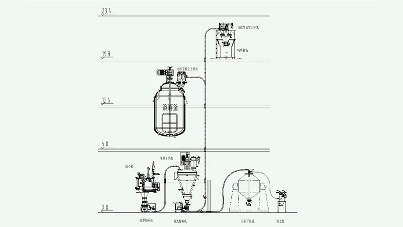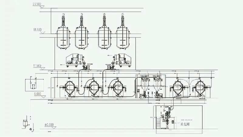 Línea de producción de granulación, secado, almacenamiento temporal, mezcla, trituración, separación magnética y envasado.